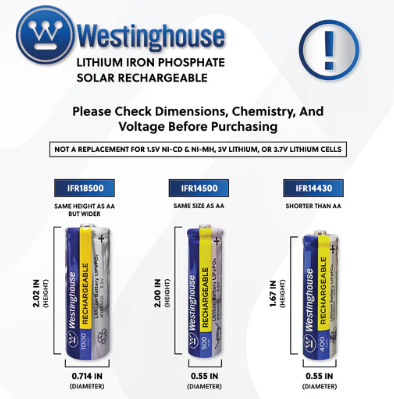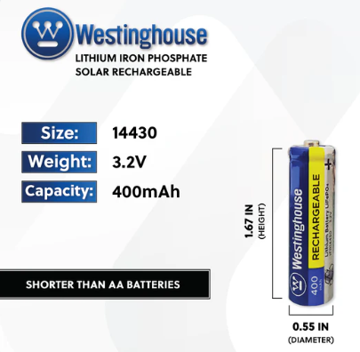 FR14430 (IFR14430) Lithium Iron Phosphate 3.2V 400mAh Rechargeable Battery 8 Pack Westinghouse – Cardboard Box of 8 | Designed for... Read more
